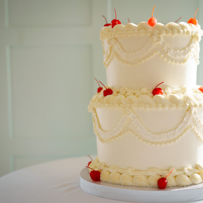 The majority of our cakes are covered in Swiss meringue buttercream—a glossy, rich, and incredibly delicious filling and covering that adds a touch of luxury to every slice.